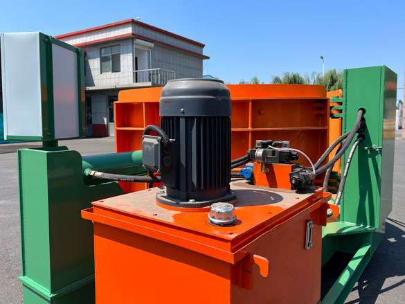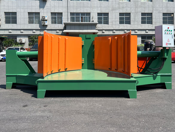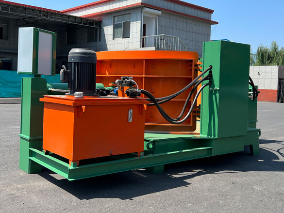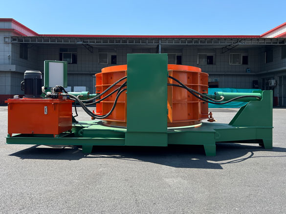 開機前按照接線圖接好電源,采用手控或遙控器控制,操作人員將噸包原料用鏟車吊高放置擠壓機兩弧形板中間平臺,按遙控壓緊按鈕,液壓缸將兩弧形板慢慢夾緊。物料夾松后,按放松按鈕,弧形板慢慢松開。如果結(jié)塊不十分嚴重一次即可。如果結(jié)塊比較嚴重,可把物料轉(zhuǎn)過90度(可調(diào)整任意度數(shù)),再壓一次,直至達到效果。